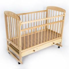 Её можно использовать как качалку и в последствии оснастить колесиками. У этой кроватки есть ящик для хранения.