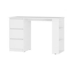 Тумба с тремя выдвижными ящиками на шариковых направляющих для школьных принадлежностей и три открытых полки собираются зеркально.