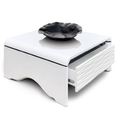 Квадратный журнальный столик с выдвижным ящиком на шариковых направляющих. Размер ящика: 570х350хh130 мм.