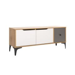 Тумба Вайс гармонично сочетает в себе строгий и брутальный декор крафтового дуба со спокойными скандинавскими фасадами.