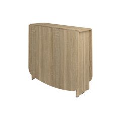 За считанные минуты конструкция превращается из узкой тумбы в широкий стол, за которым легко уместится до 10-12 человек. Если гостей ожидается не более 8 человек, то изделие можно разложить наполовину.