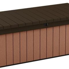 Сундук сочетает в себе очень прочную конструкцию и элегантный дизайн. Изготовлен из инновационного материала EVOTECH™, устойчивого к погодным условиям и ультрафиолетовому излучению. Рустикальная фактура, напоминающая дерево, и стильная двухцветная оправа - это дополнительные эстетические достоинства изделия. Благодаря большой вместительности в сундук Darwin поместятся подушки и другие принадлежности, что поможет поддерживать порядок на террасе, в патио или саду. Применение приводов облегчает открытие крышки, а закрытие крышки на замок позволяет при необходимости держать сундук безопасно закрытым. Сундук также может использоваться как дополнительное место для сидения.