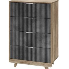 Особый шарм комодам «Мегаполис» придают трендовые цветовые решения фасадов, которые идеально вписываются практически в любой стиль. Оригинальная фрезеровка и эксклюзивная фотопечать выглядит очень эффектно и эксклюзивно. Пыли и грязи на таких поверхностях совершенно не видно, а это огромный плюс для домохозяек! Комод (КМ-02) состоит из четырёх выдвижных ящиков на шариковых направляющих для хранения одежды, пастельного белья и других хозяйственных аксессуаров. Цветовая палитра фасадов комодов впервые разбавлена фасадами с качественной фотопечатью.